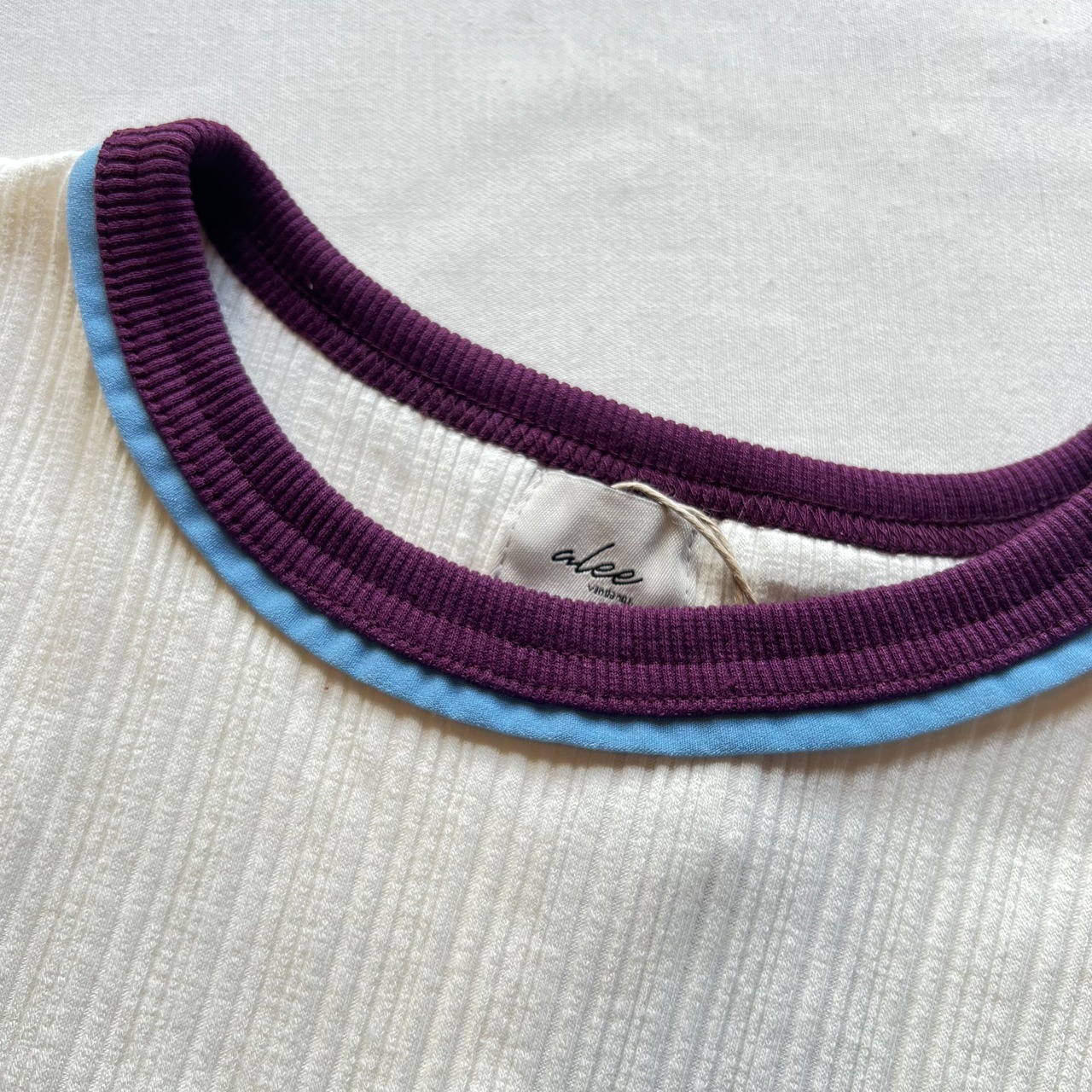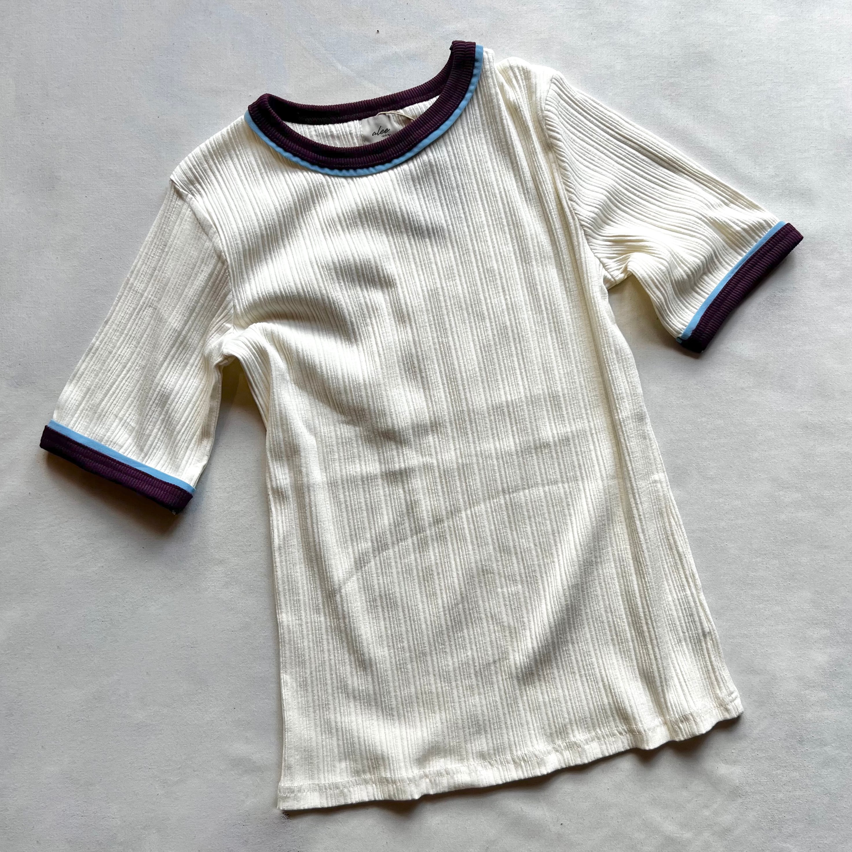 【alee】 bicolor rib 3/4 sleeve tee (off/purple/blue)