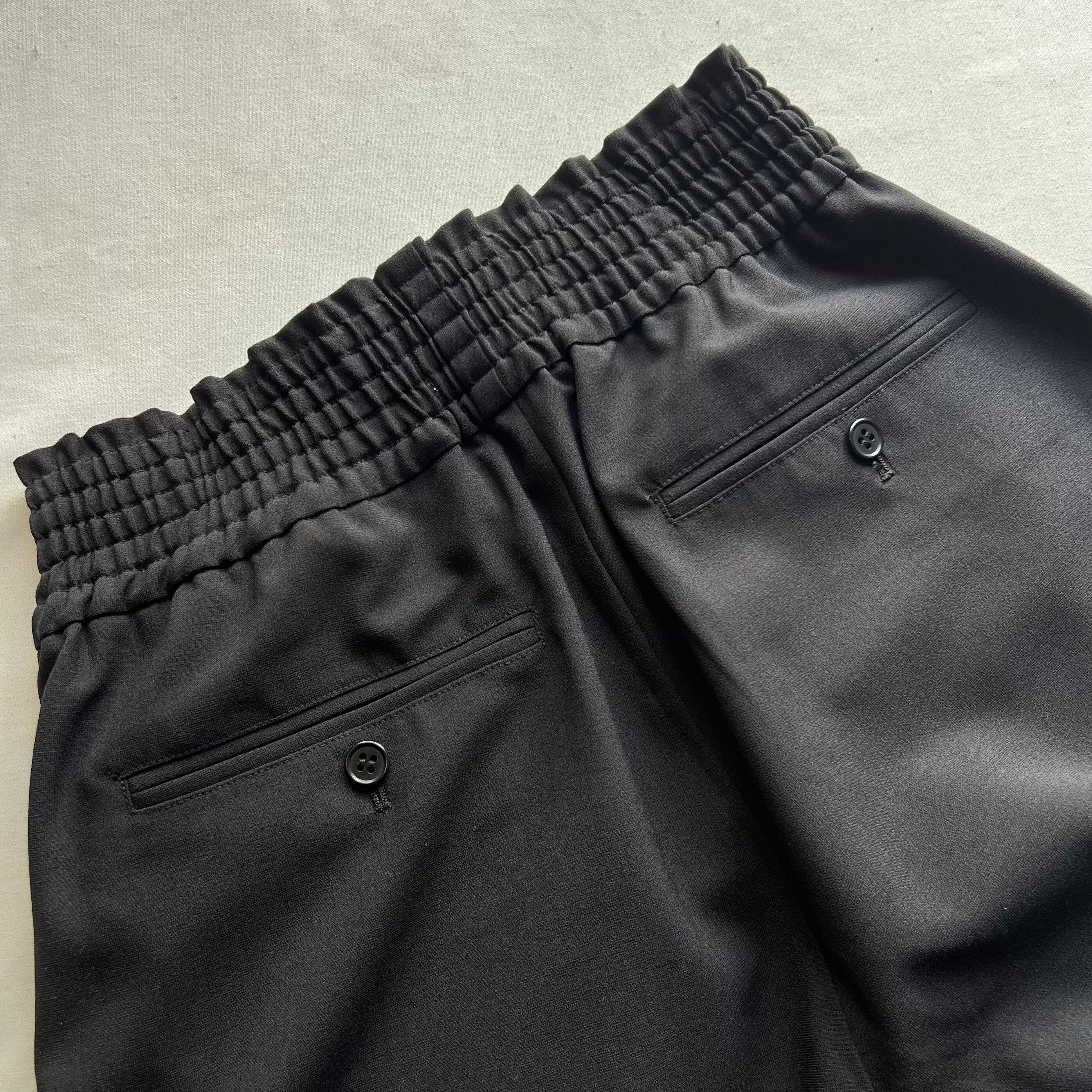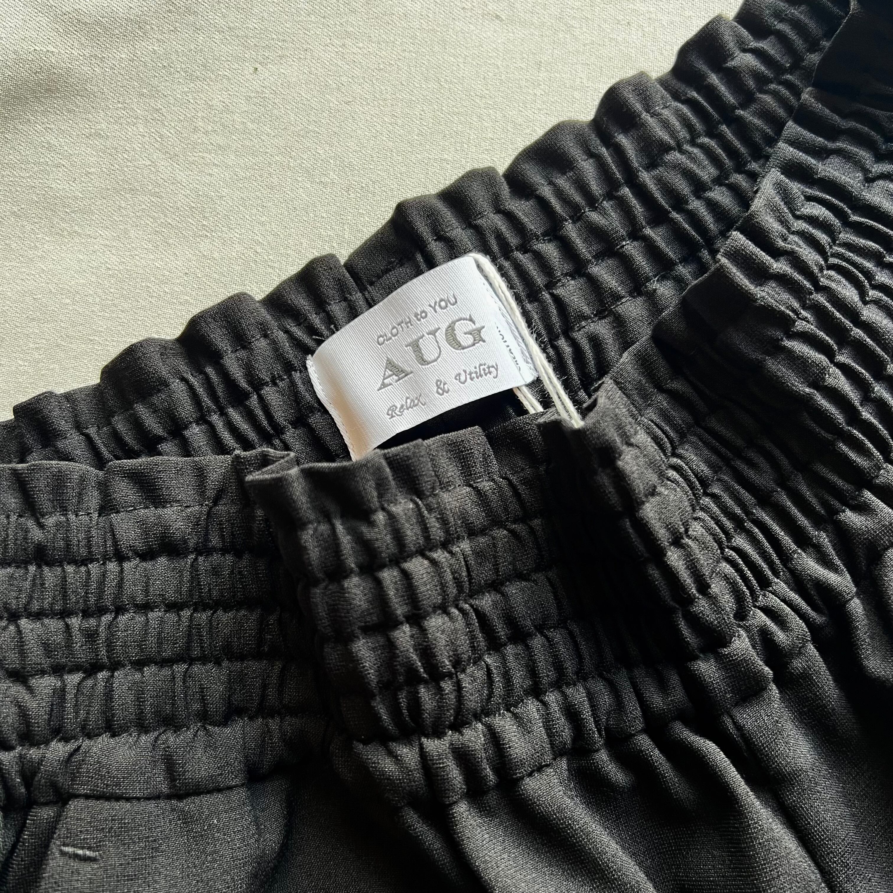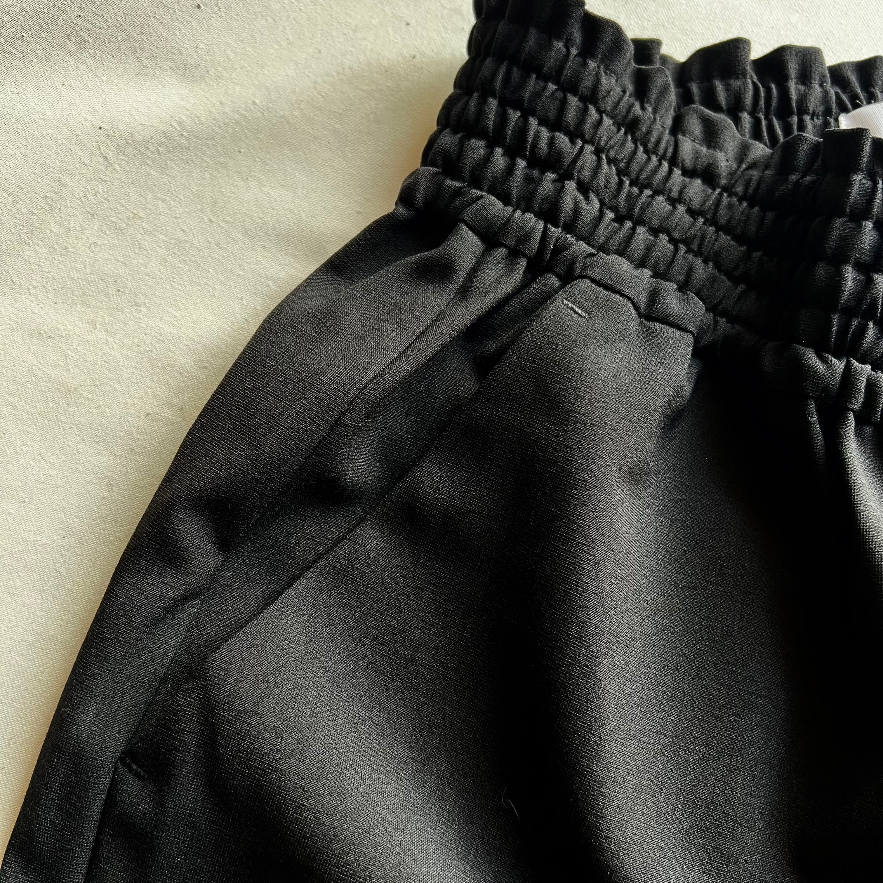 ウエストを細いゴムのシャーリングにすることで窮屈感がなく楽な履き心地に。