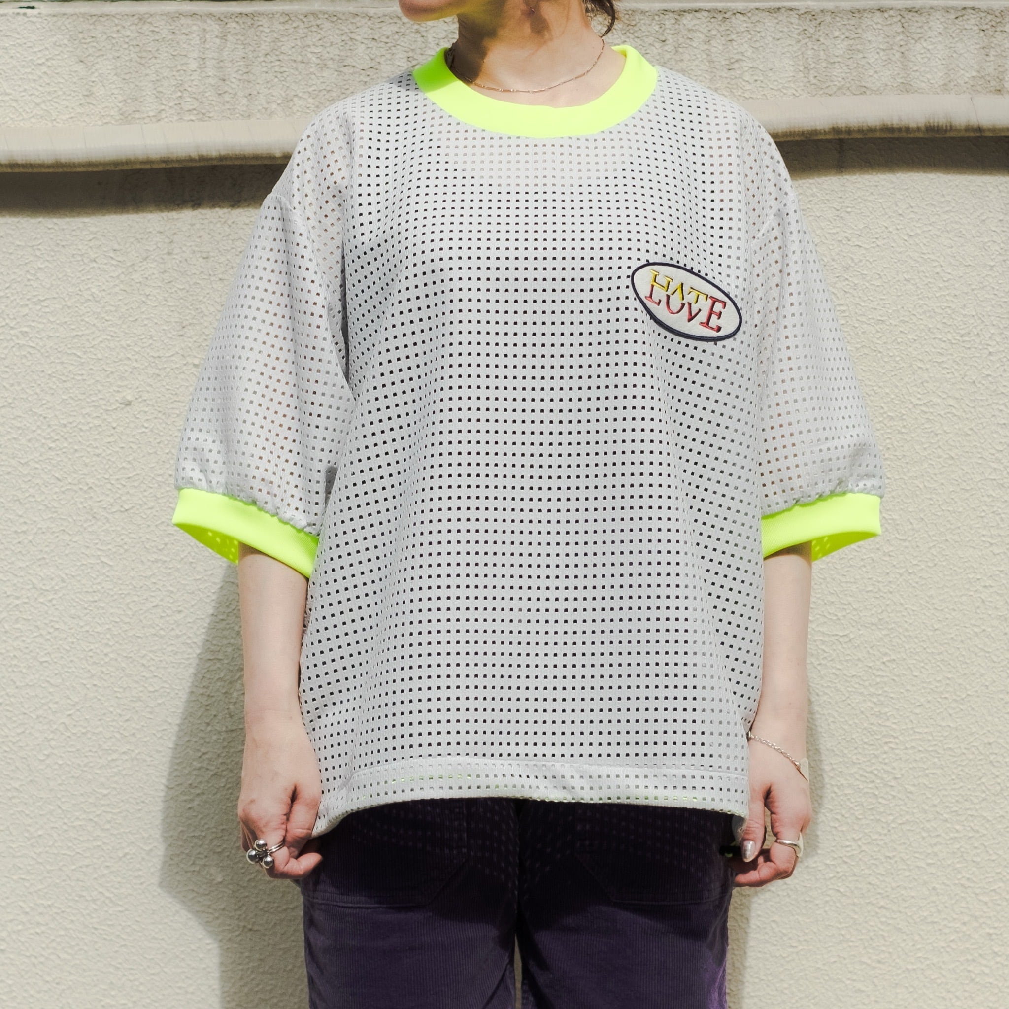 POPな配色が印象的な清涼感あるメッシュリンガーTシャツ。