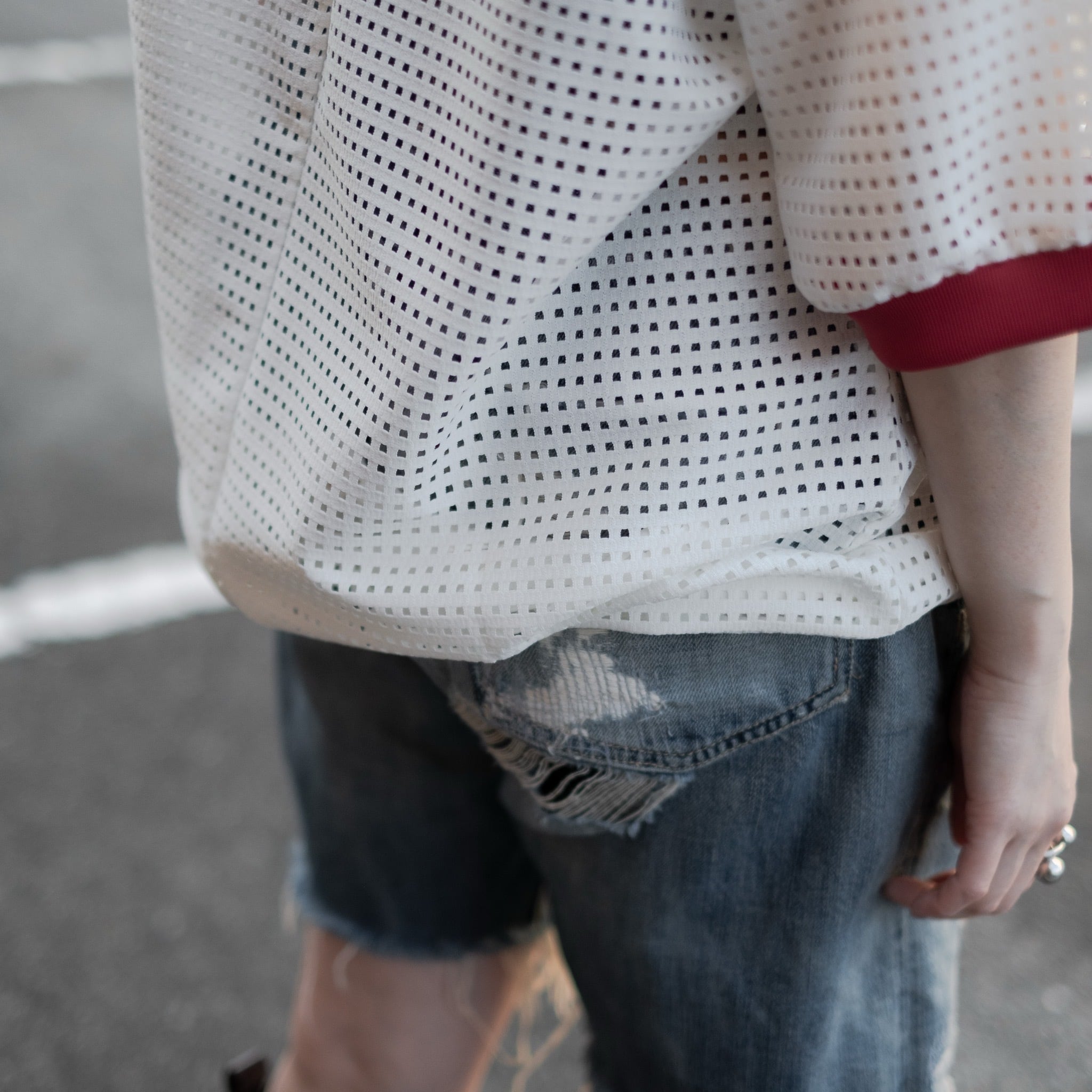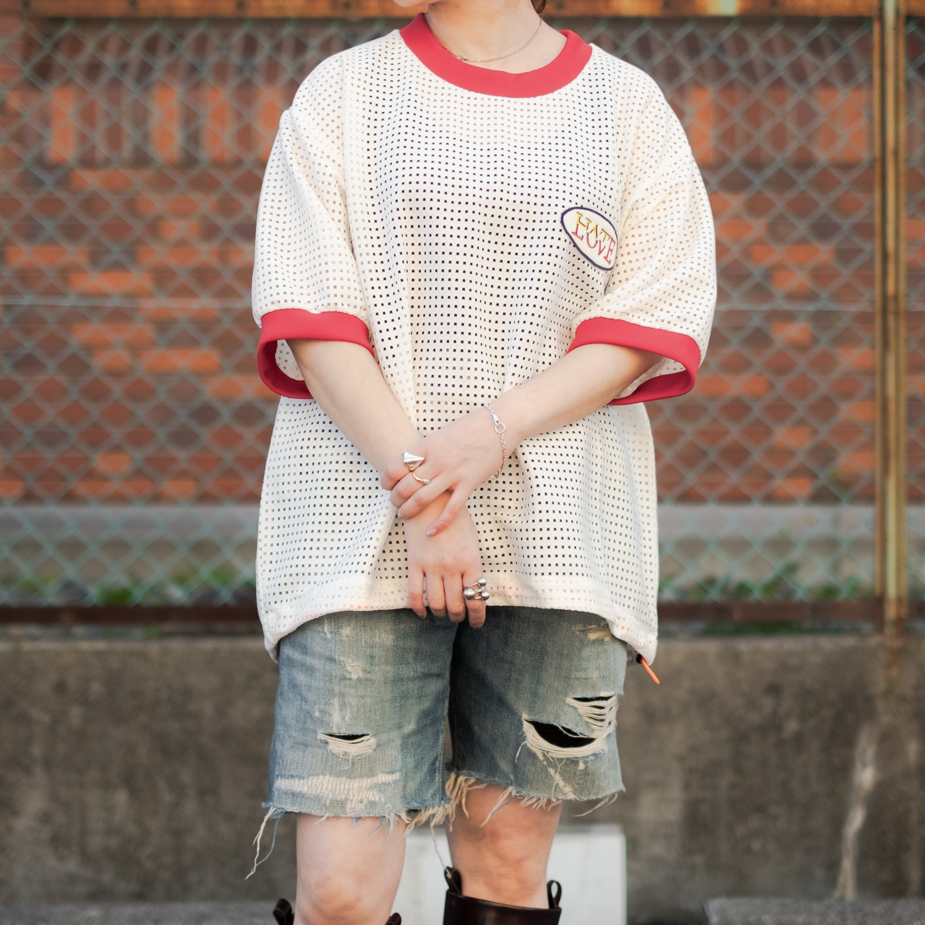 POPな配色が印象的な清涼感あるメッシュリンガーTシャツ。