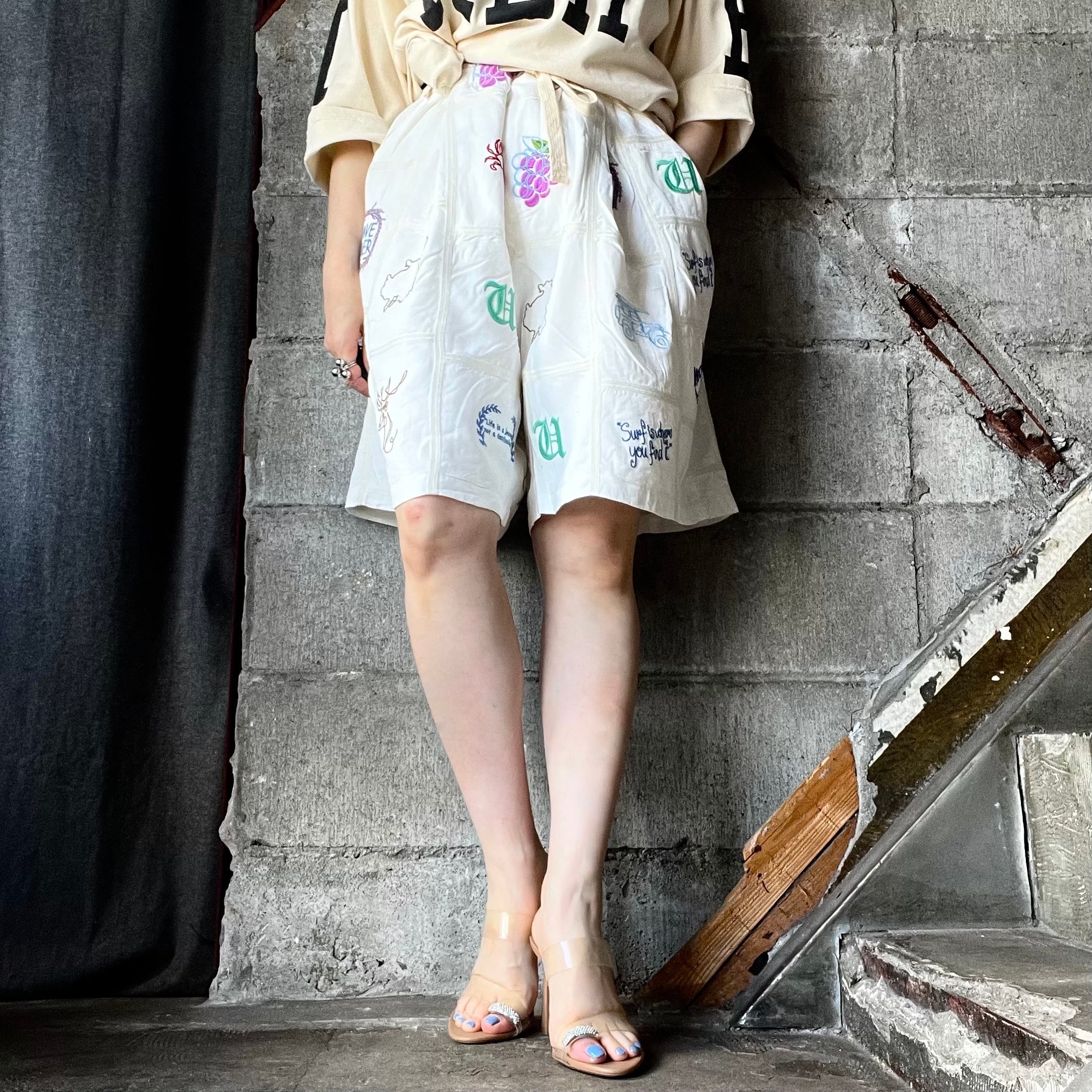 パッチワーク 刺繍 ショートパンツ