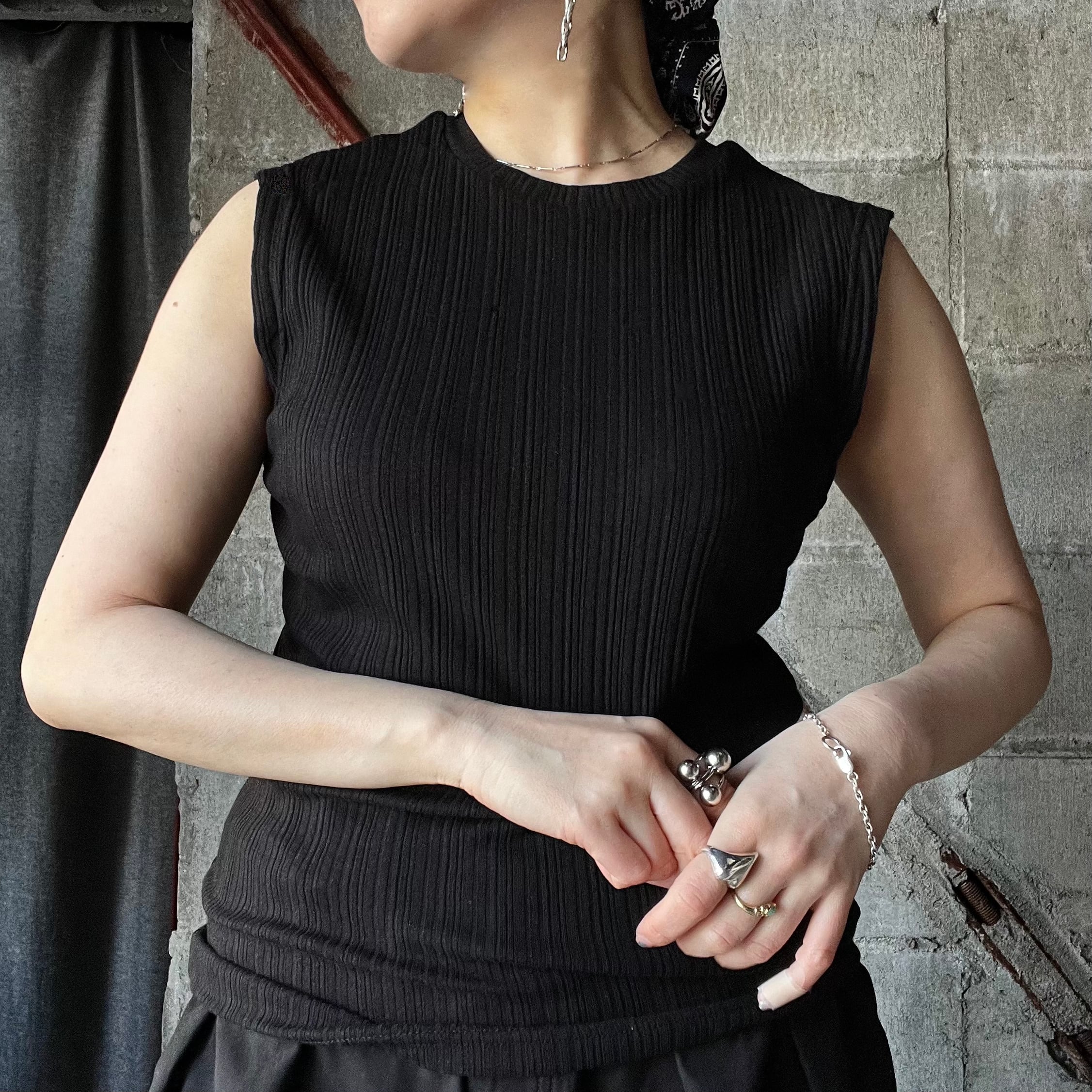 そんな方におすすめのメッシュタンクトップとテレコ素材のノースリーブ。
