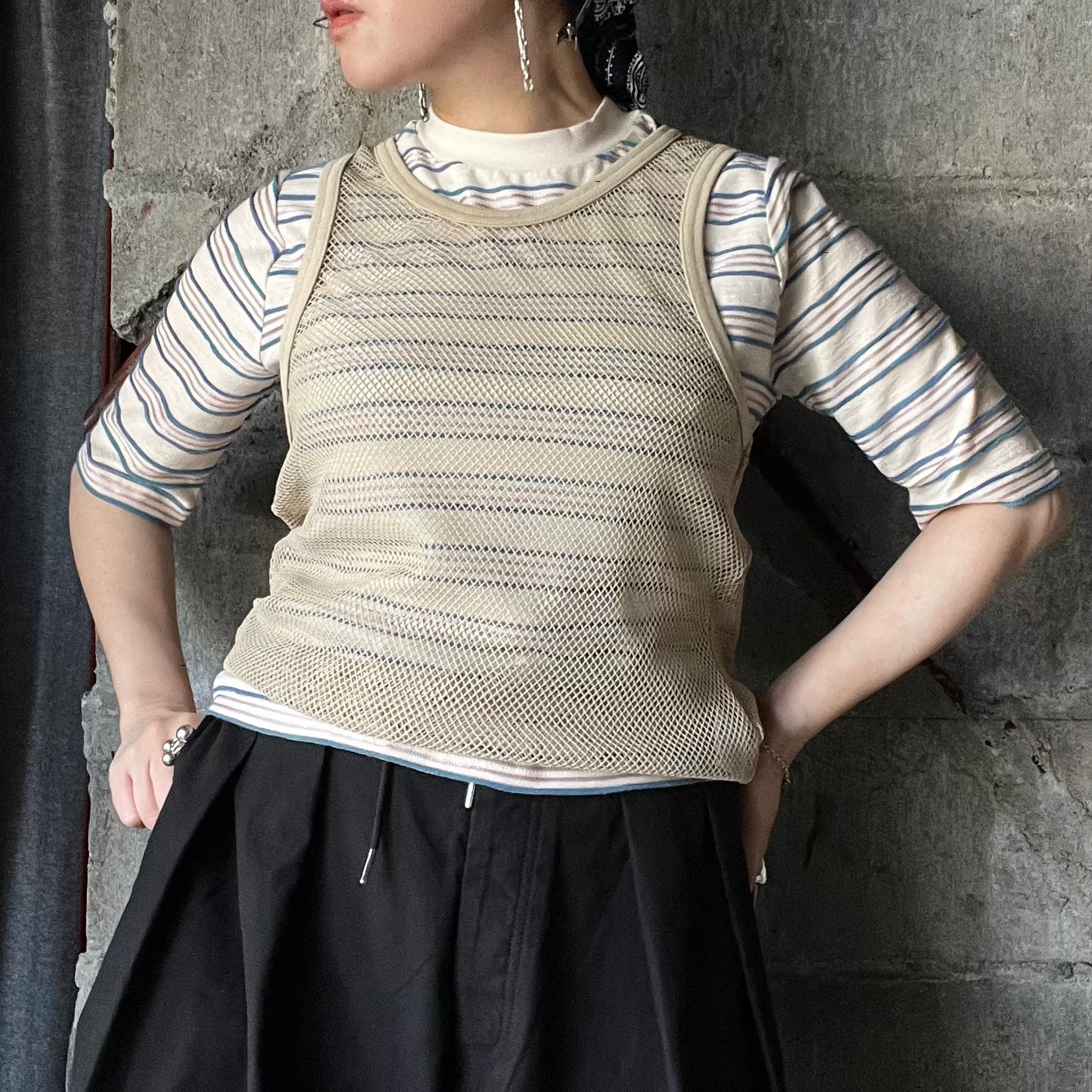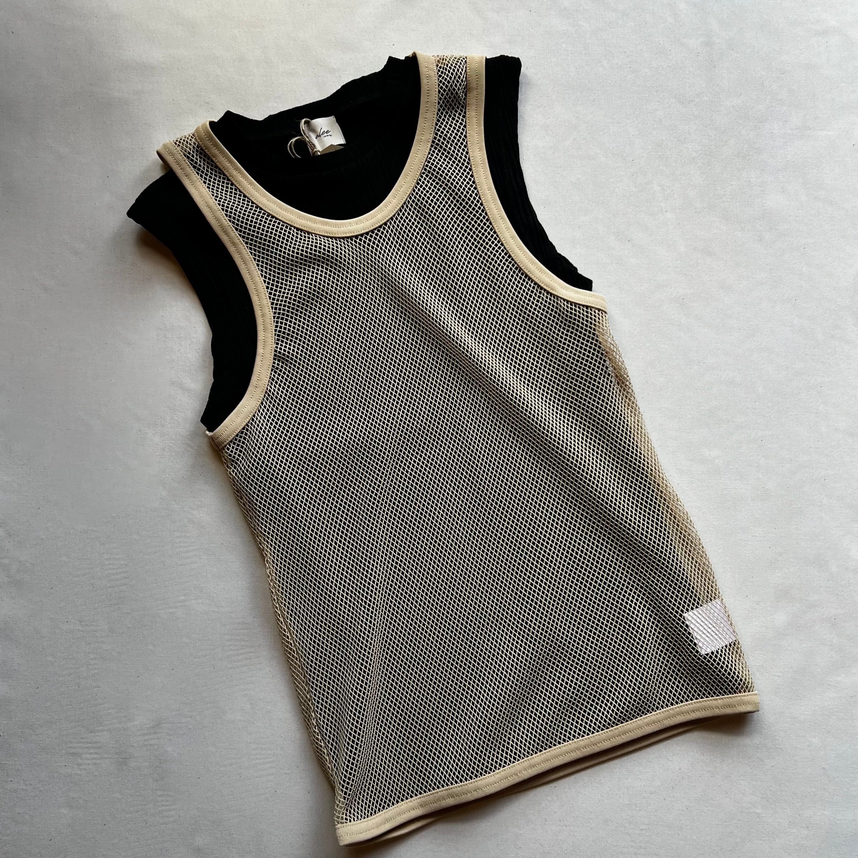 テレコ ノースリーブ メッシュ タンクトップ セット
