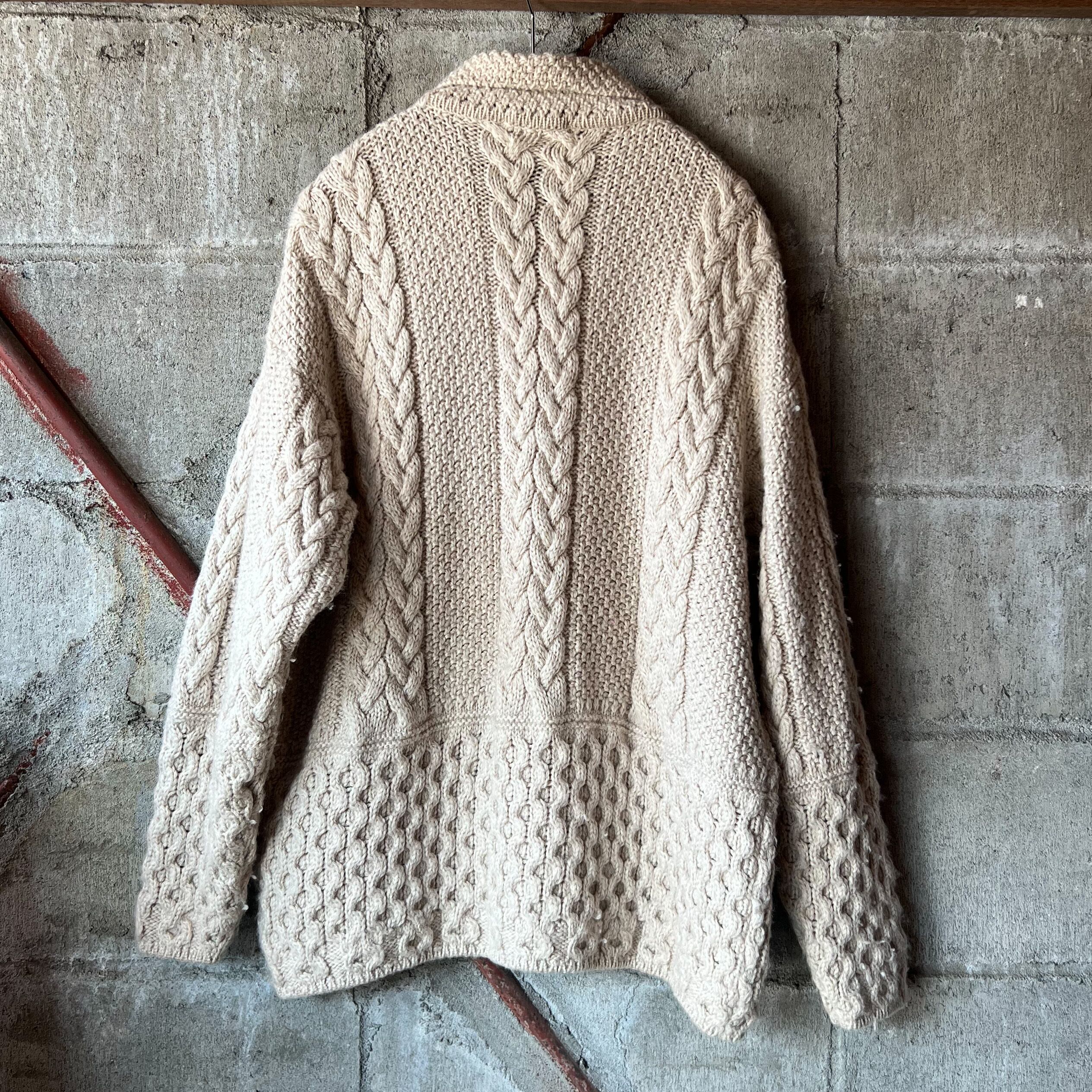 ゆったりとしたサイズ感のケーブルニットカーディガン。