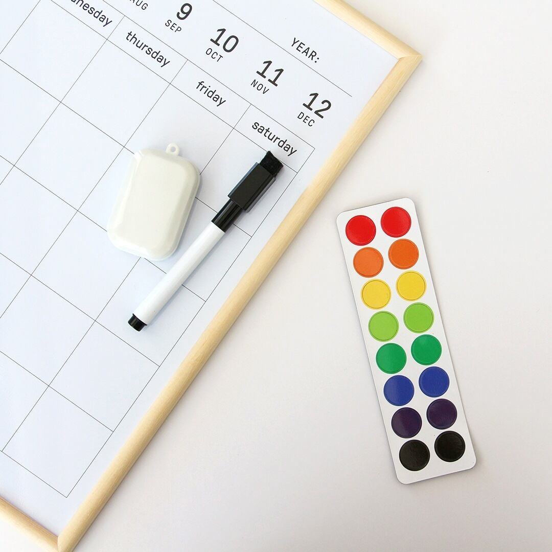 付属のマグネットでカラーごとに予定や、家族のスケジュールを振り分けられるのも便利。