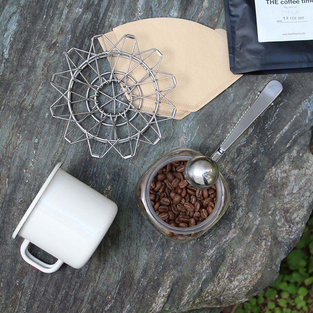 使用しない時はコンパクトに折り畳んで収納できるワイヤー製コーヒードリッパー。