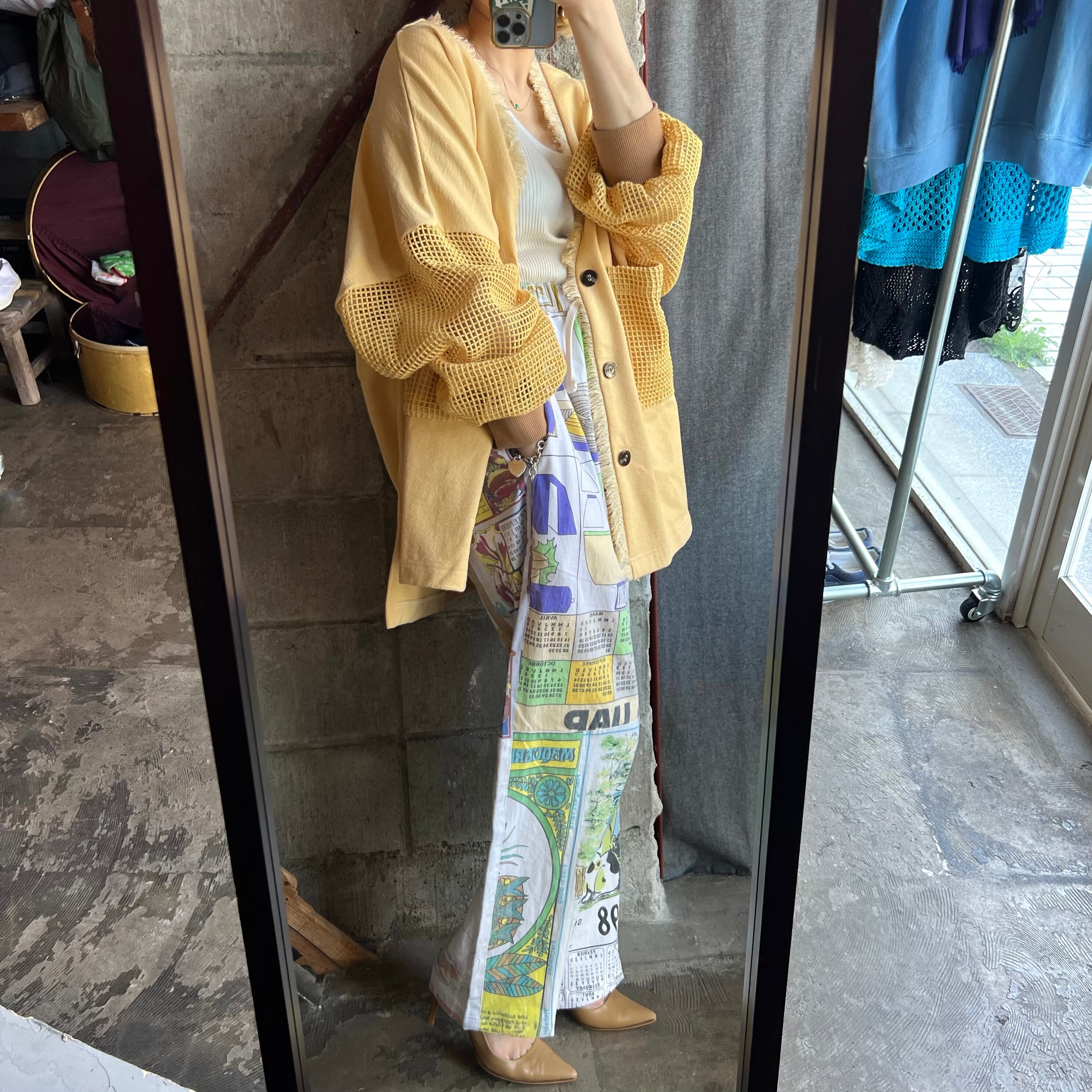 古着のタペストリーを解体、リメイクし、イージーパンツに。