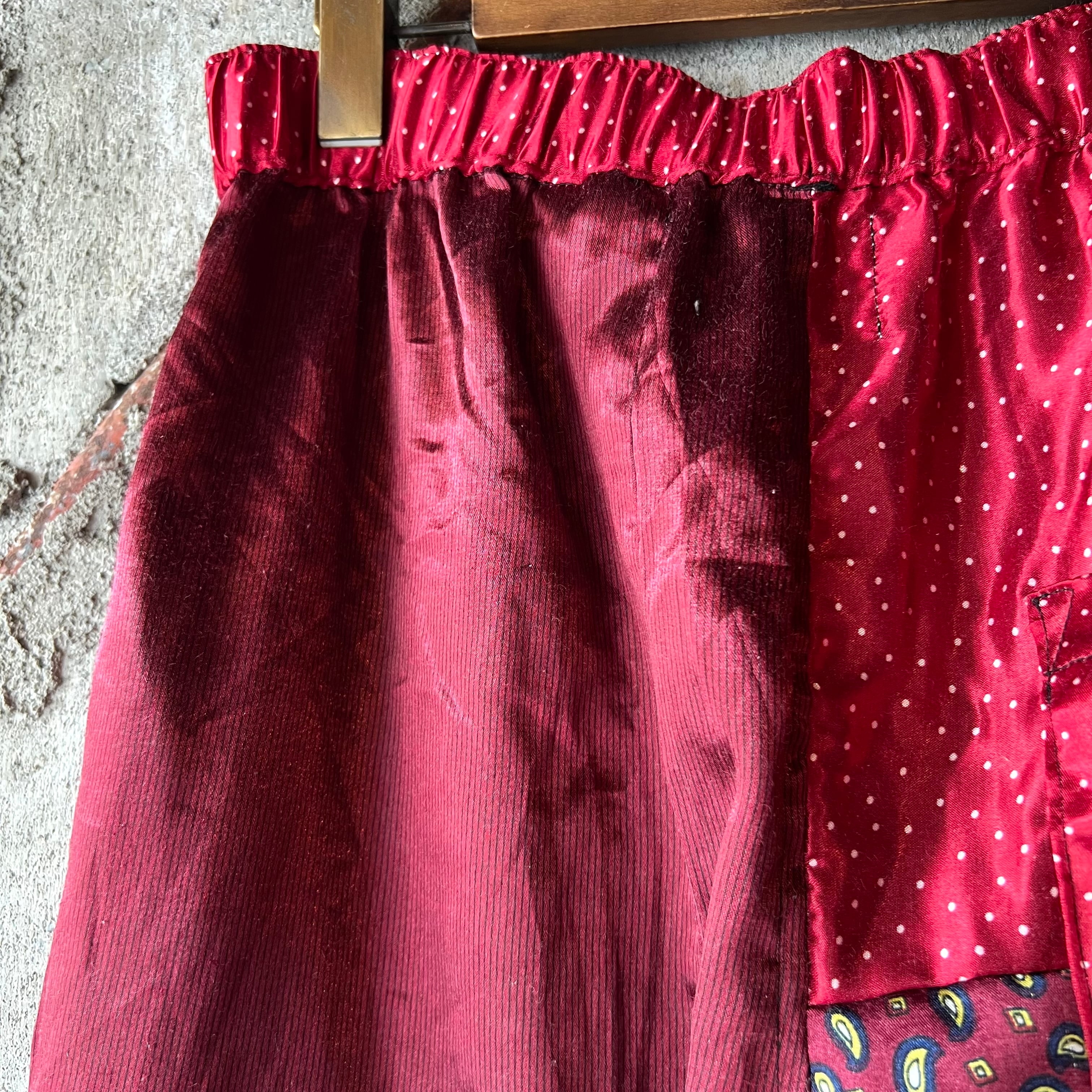 used pajama patchwork remake pants(red)
