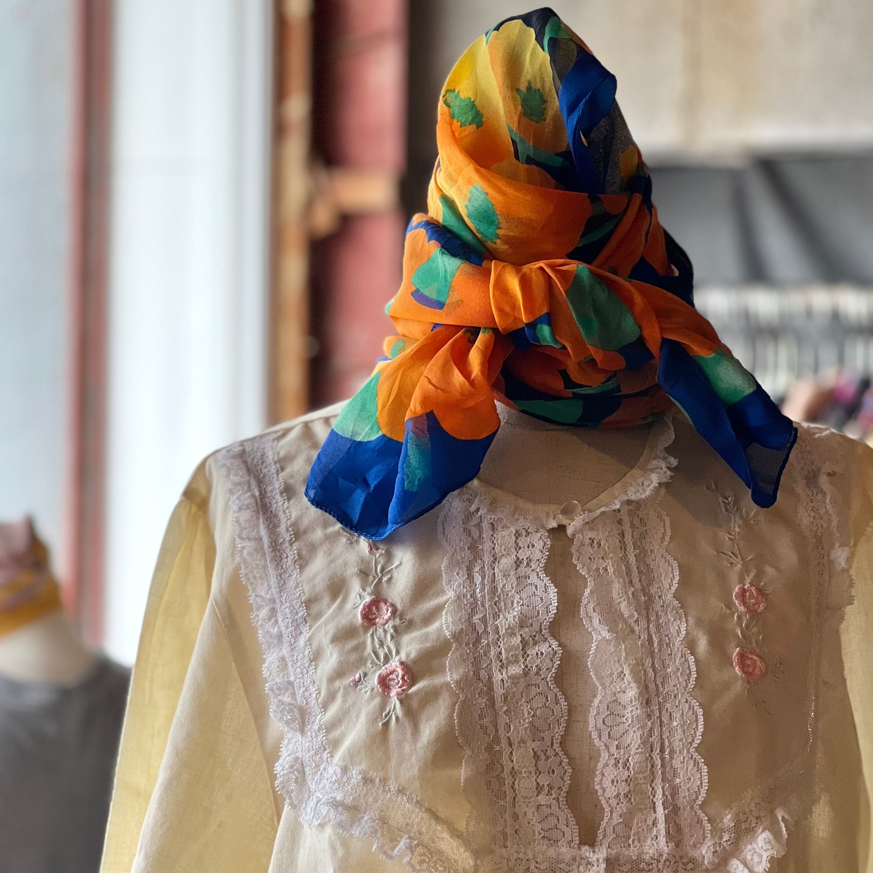 透け感のあるシフォンのような素材感に鮮やかな花柄がポイント。