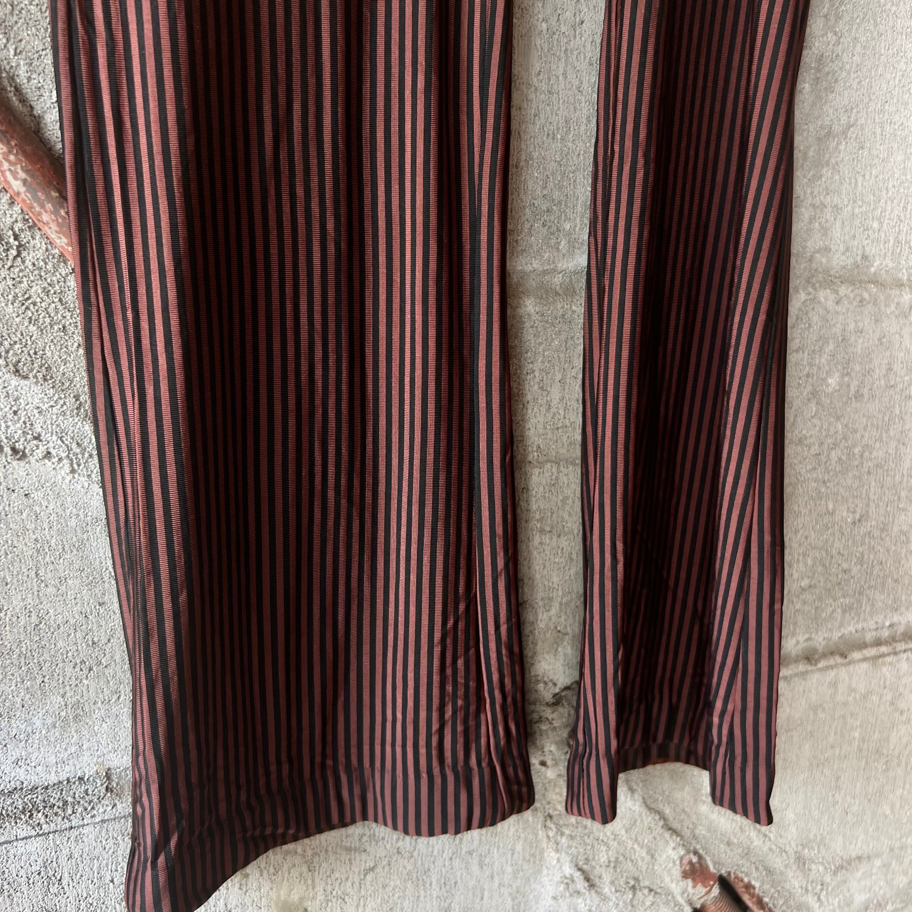ストライプ柄とフレアライン、フィットする素材感で脚長効果も抜群。