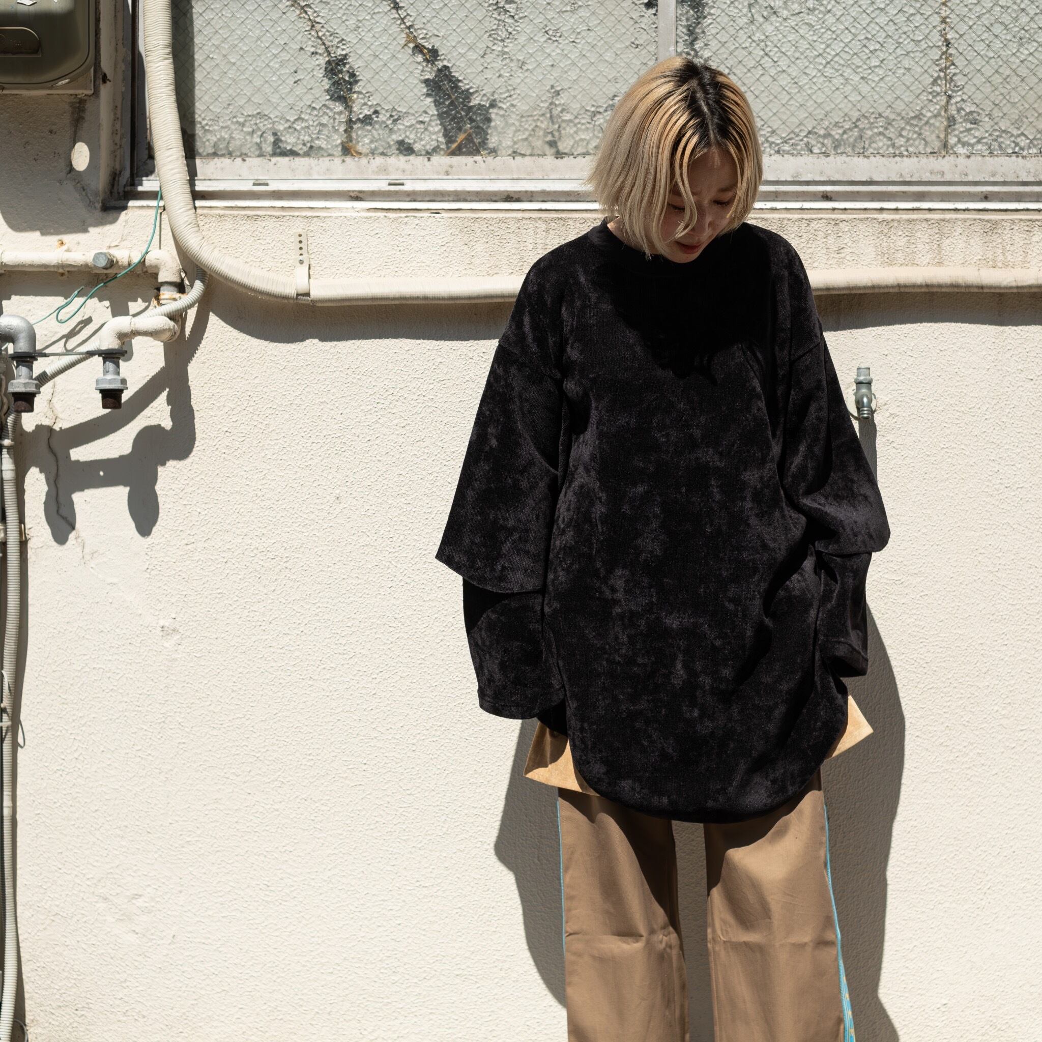 モール糸(少し毛羽立った糸)を使用した変形ロングカットソー。