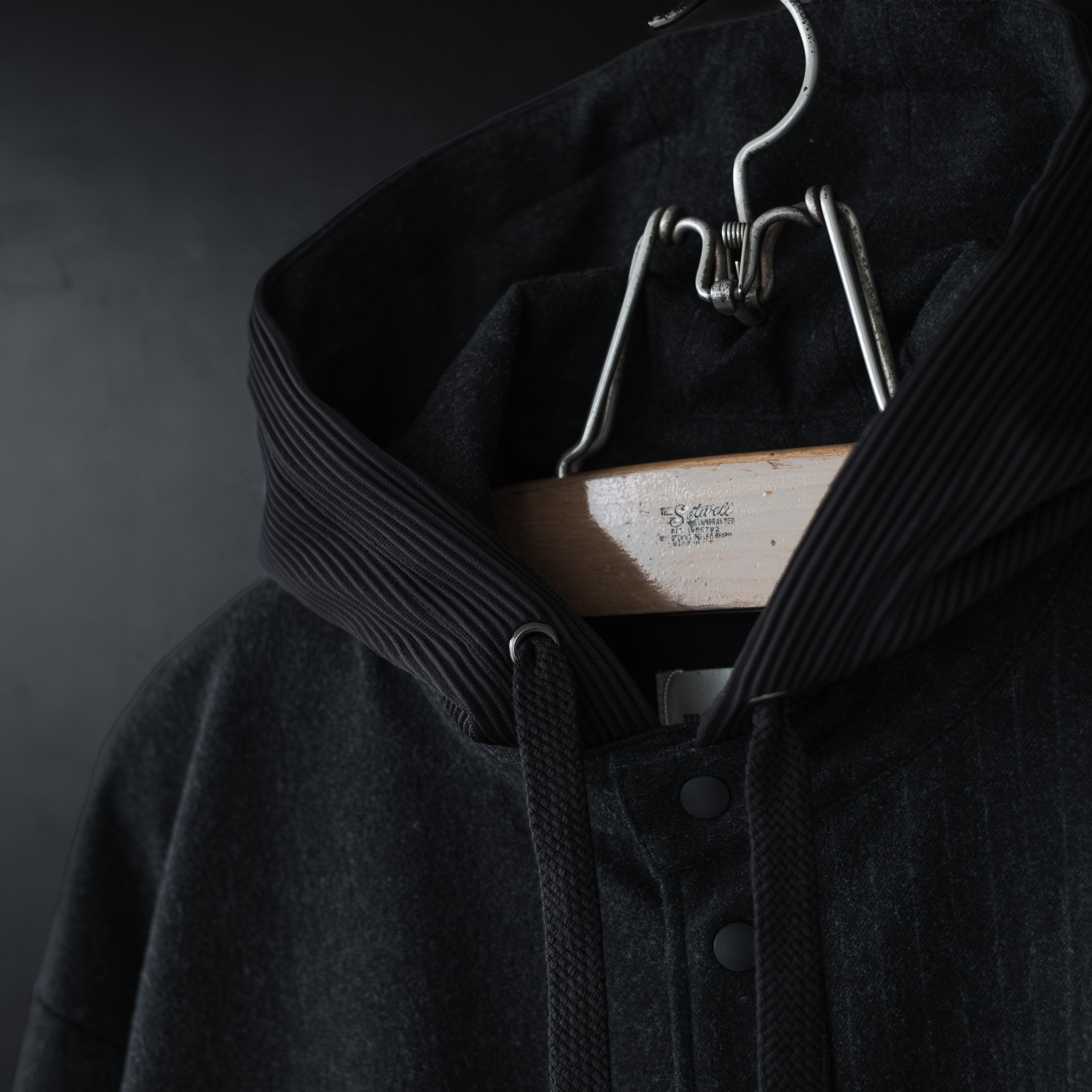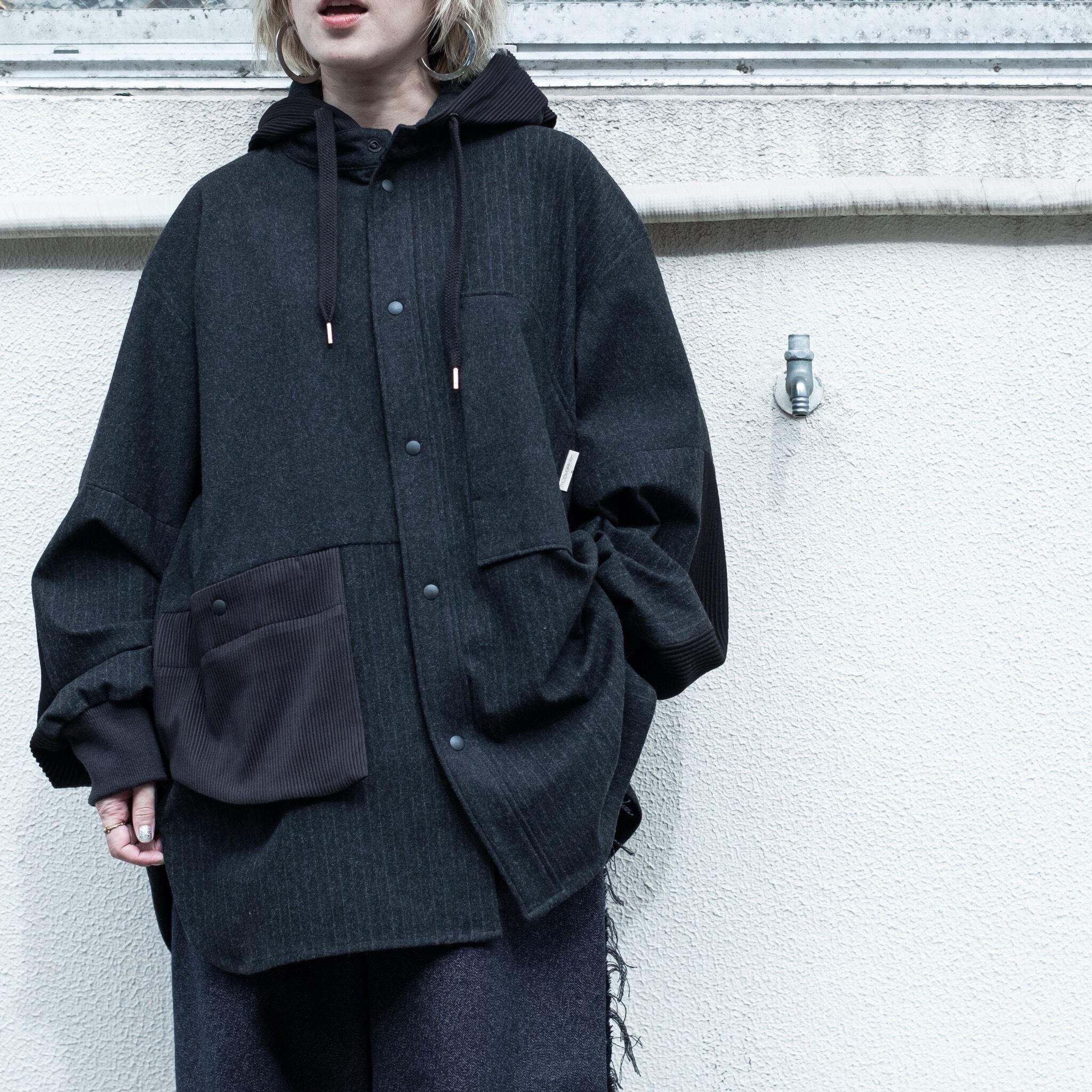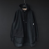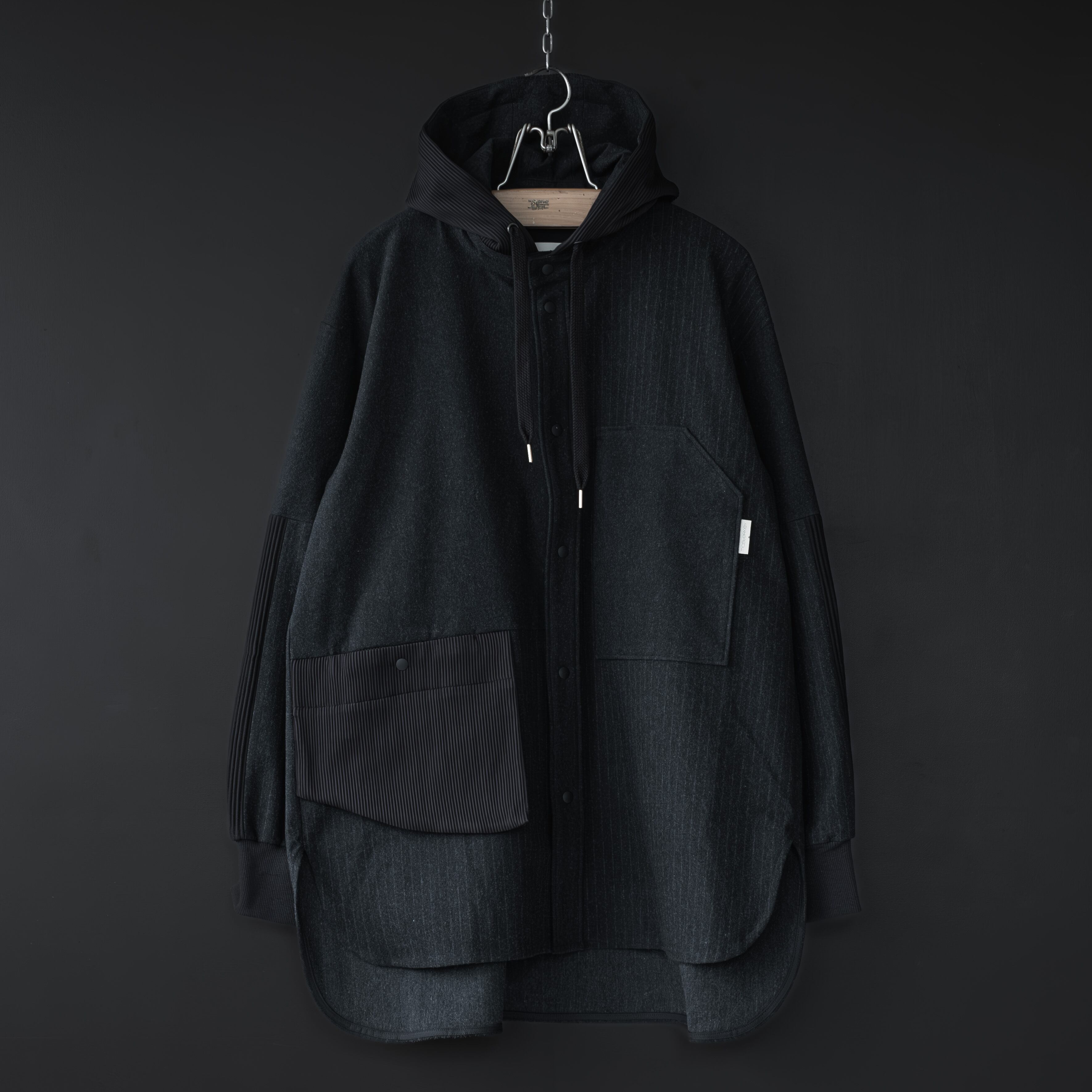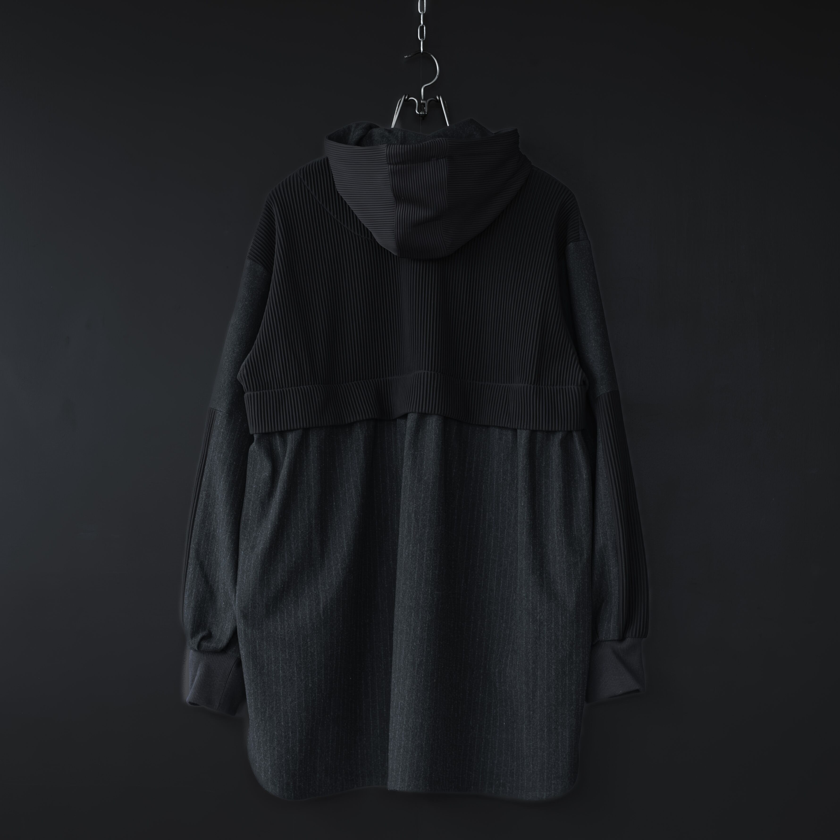 縦横斜め360度全ての方向に伸びてしっかり戻る、驚異的な伸張率と伸長回復率の次世代素材 『WONDERSHAPE』を使用したロングシャツパーカー。