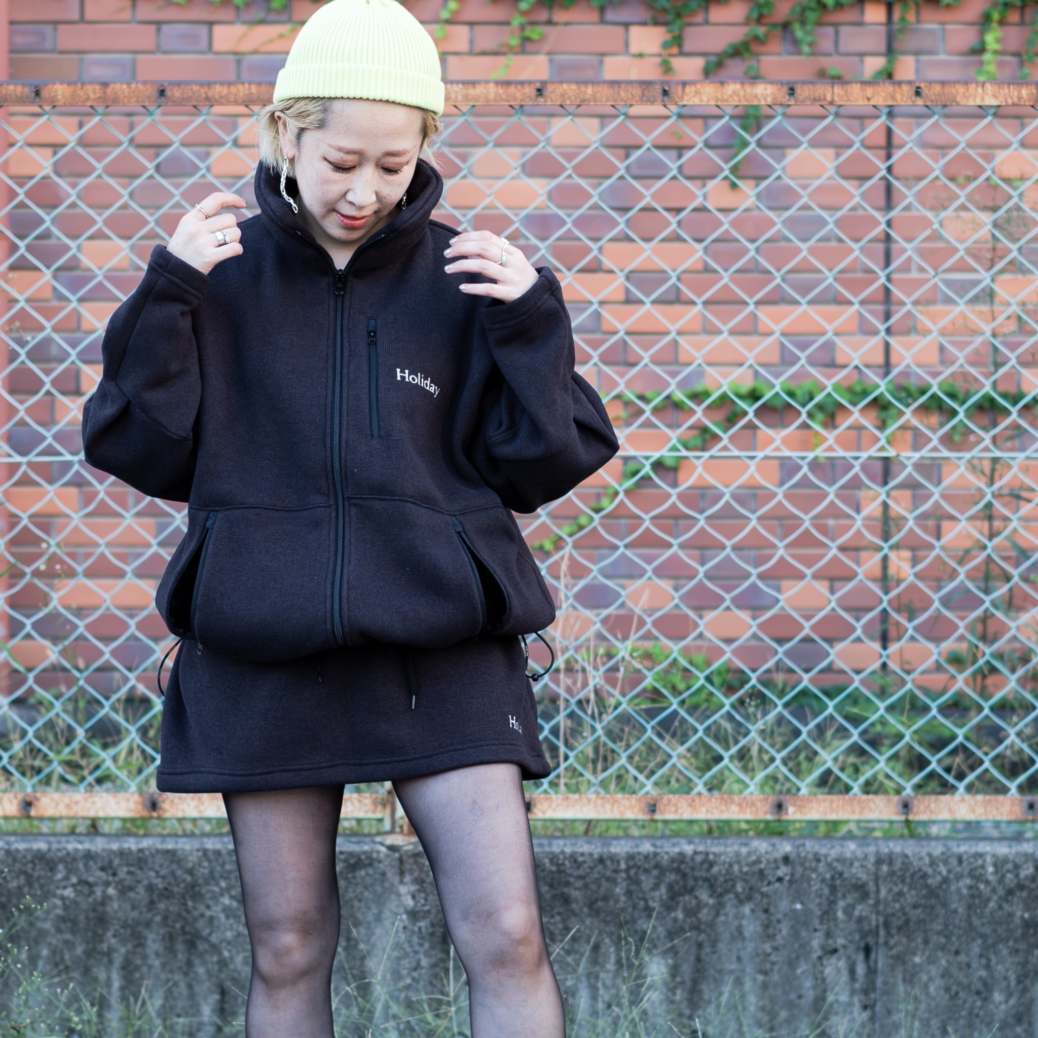 ・【HOLIDAY】 thermal pro fleece tuck mini skirt (black)