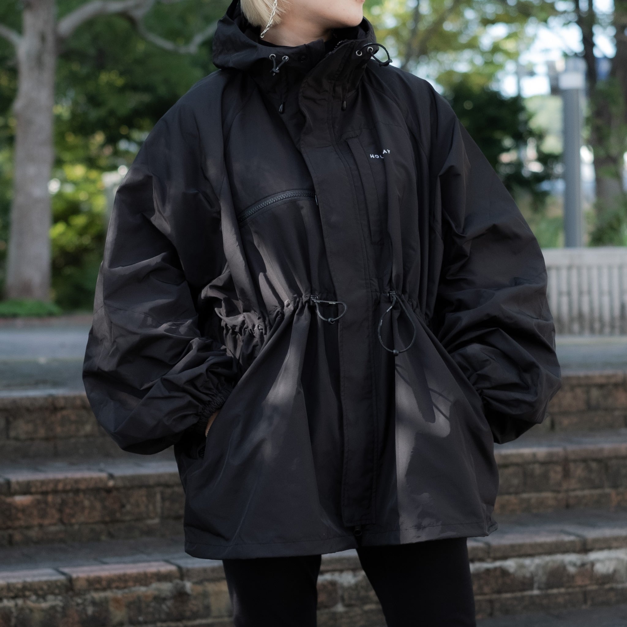 フード、ウエスト、裾はドローコードでシルエットの調整が可能です。