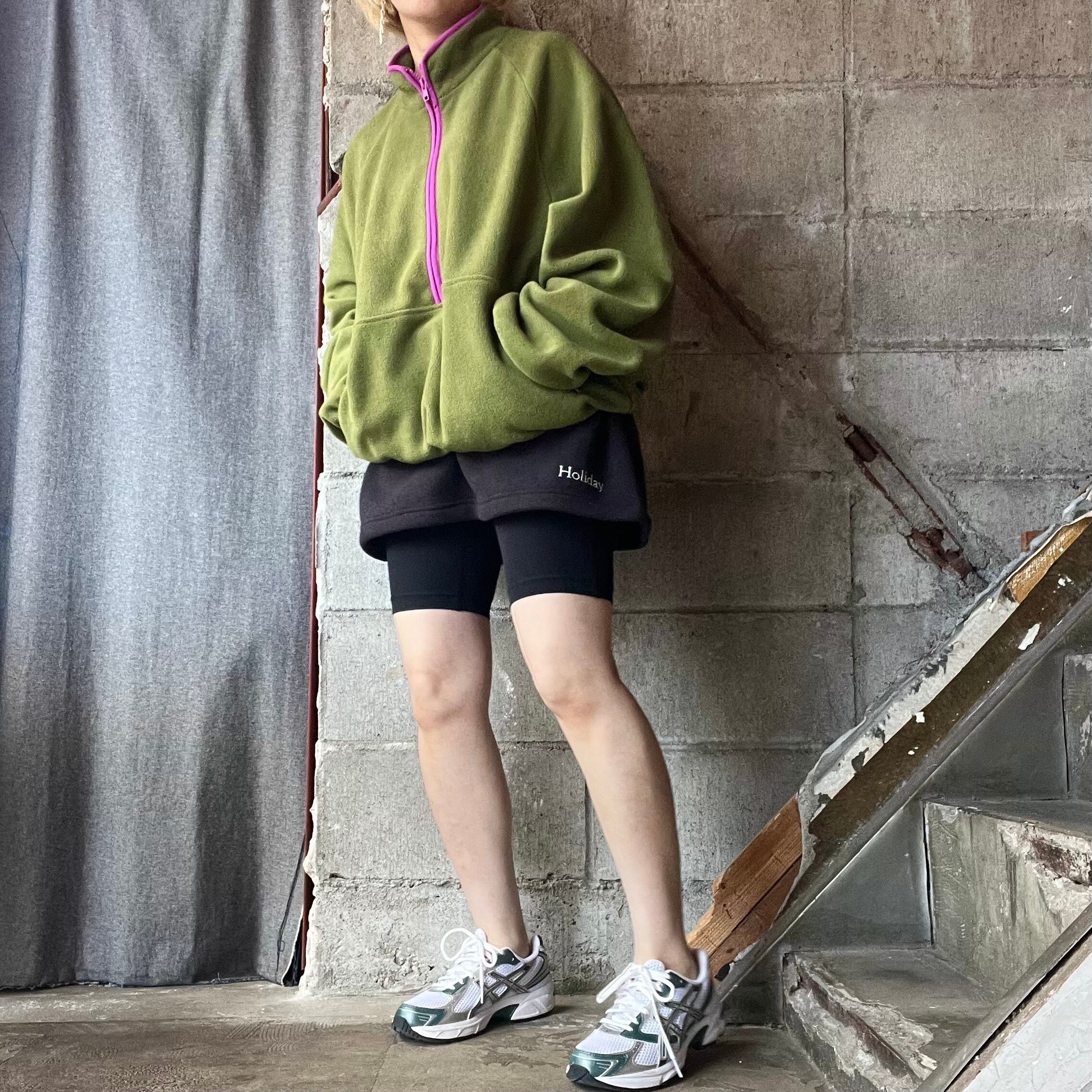 保温性抜群の両面起毛フリースを使用したハーフジップクルー。