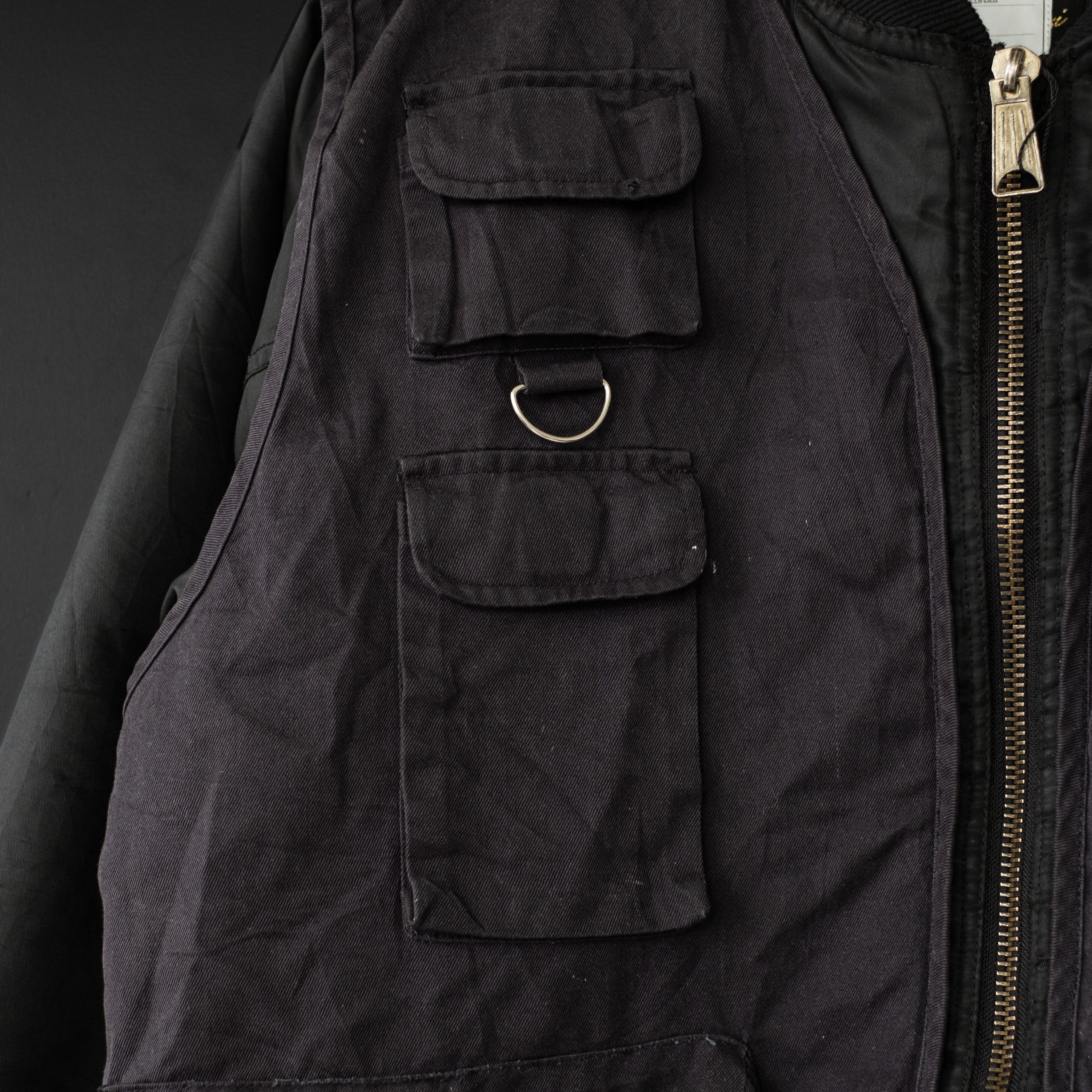 古着のMA-1タイプとフィッシングベストをドッキングさせたリメイクitem。