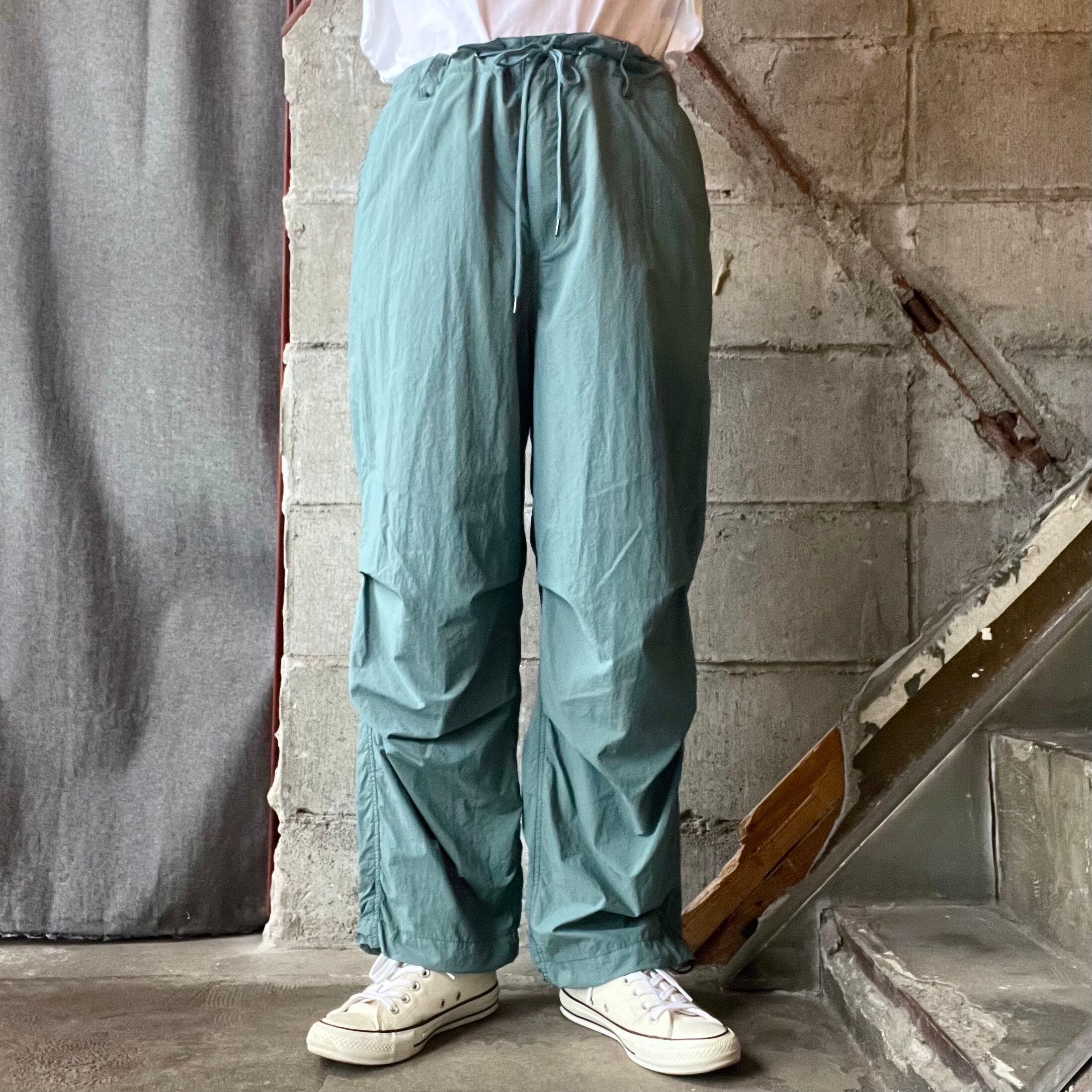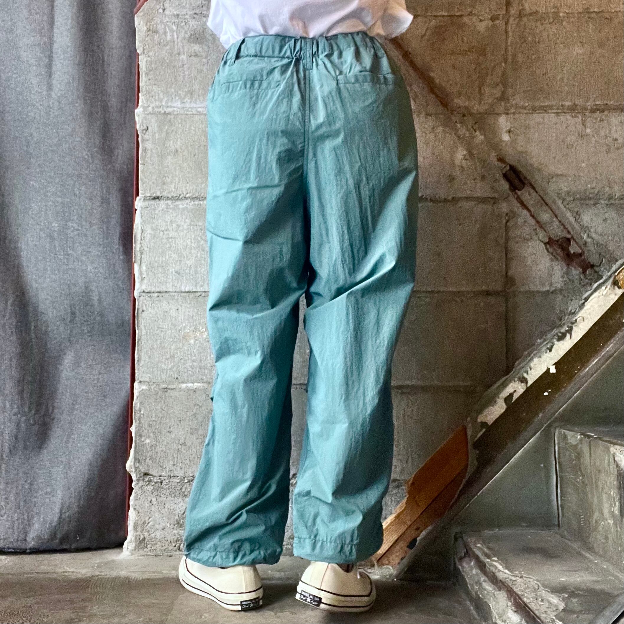 マットな質感が特徴のワッシャーナイロンを使用したパラシュートパンツ。